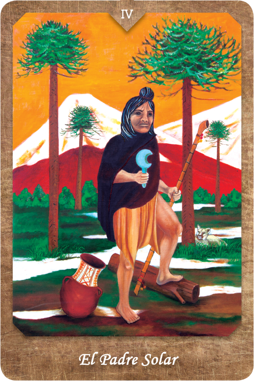 El Tarot de los pueblos del Sur de Ámerica, producto de la visión de Myriam García Jorquera (Colectivo Red Vilú), quien me invitó a ser parte de este proyecto como la pintora de las imágenes, fue creado en un trabajo colectivo de investigación de las culturas que ocuparon el territorio hoy llamado Chile. Se tomaron en cuenta las etnias que estaban en el territorio desde épocas pretéritas.